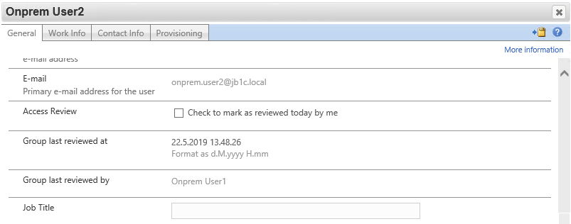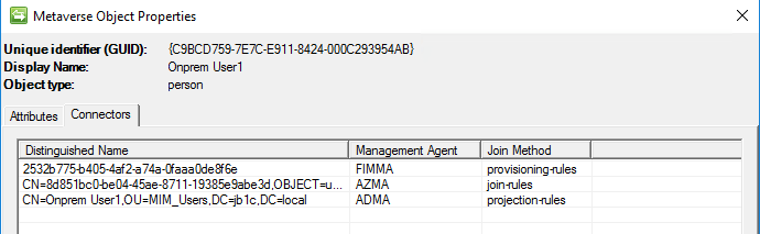 Create user in on-premise directory, let AAD Connect synchronize it to Azure AD and then join both on-premise Active Directory and Azure AD objects to the same identity in Identity Manager. I see this useful in case you want to do something with Azure AD groups in Identity Manager. In this demo I will show these groups and their members in Identity Manager to achieve single point of view to identities and their permission regardless if they exists in om-premise, cloud or hybrid setups. This can be of course extended with what ever processes you might have already available. Maybe you want to detect when Azure AD user is no longer a member of any groups and launch the leaver process for such a user?