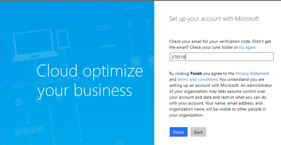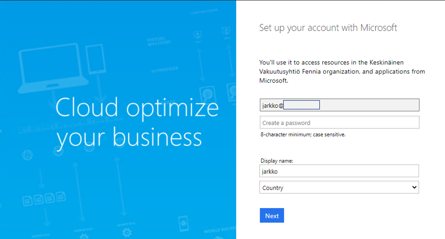- Clicking the invitation link I’m prompted to set up an account. This is because my email address had only a personal Microsoft account attached to it