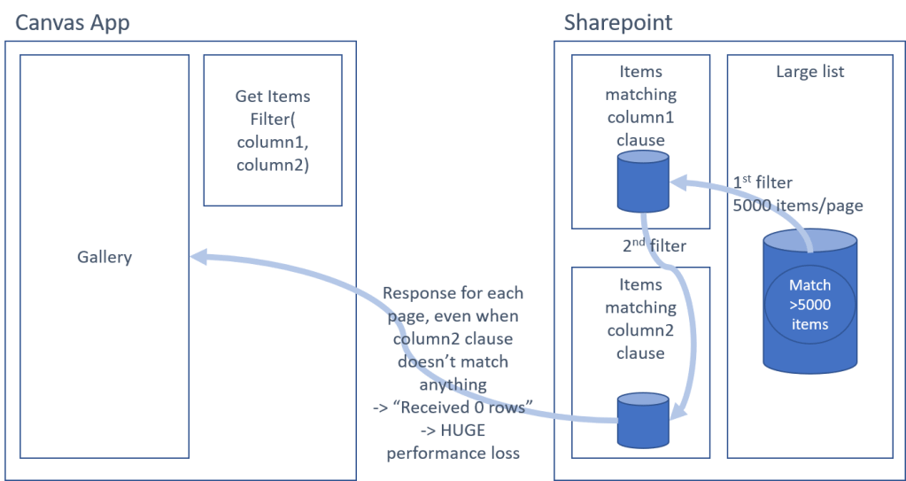 The most important thing with using large Sharepoint lists is to remember that 5000 items limit. What ever you do, you should always think twice if that limitation is affecting you. If you’re complete new to this, I would recommend starting with reading the documentation about delegation in a canvas app. Using delegable functions you can access your items from a list as far as you won’t need more than 5000 items at a time.